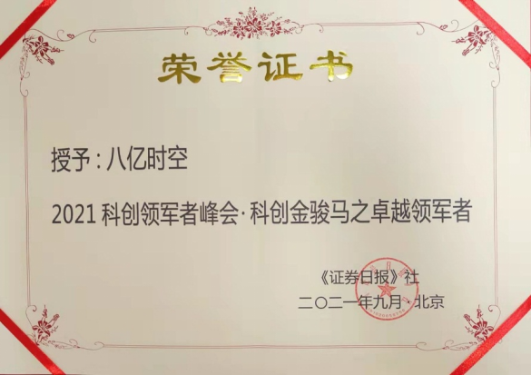 中国上市公司协会会长宋志平、证券日报社社长陈剑夫、中国科学院核心研究员、博士后导师张志强及科创板上市公司高管等40余名行业专家学者和企业领导汇聚一堂,围绕科创板相关话题进行深入的讨论和解读,为实现产业报国、科创强国建言献策。峰会现场,八亿时空被授予“科创金骏马之卓越领军者”奖。